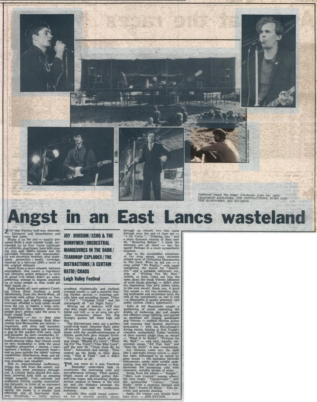 Tony Wilson was impressed and decided that they’d want to see us so he said if we could get to Leigh for a open-air festival he’d organised, (he DID say all this, that’s what he was like), he’d put us on. So we did. (these previous links contain interesting info on the business practices of Factory/Tony that have also emerged in other areas – we should have guessed then… The comments by Chris Miller are especially salient). (see here also – added on 31/10/2007)