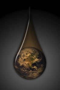 - Earth in an oil drop, depending on fossil fuels. North America is the focus of the globe. Clipping path included for oil drop.Earth image from NASA: http://www.earthobservatory.nasa.gov
