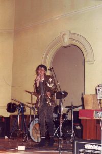 - Jeff (Doomage) at Druridge Bay anti-nuclear power station CND gig in the sand dunes. [Martin Blank]