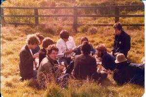 - Strangely and Doomage. This was a New Years gig down near Lampeter/Tregaron. Some guy from Hawkwind was there passing the joints around, which was nice. We slept in a farmhouse and I think this is us going for a walk in the morning.