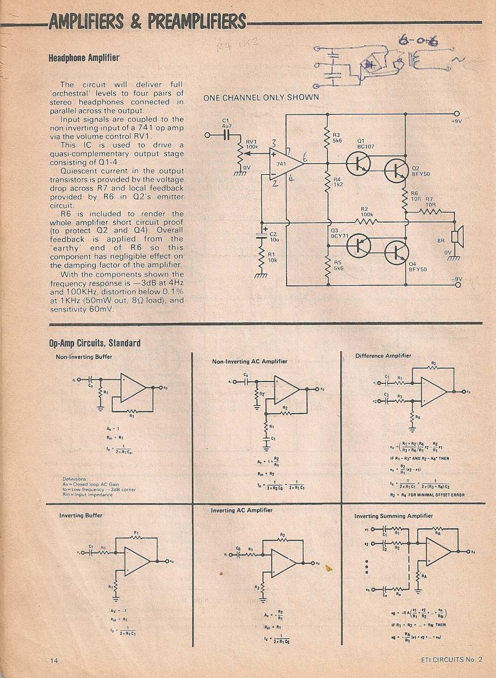 It was cheap but very effective. It’d drive several pairs of headphones in the drum booth and elsewhere. The circuit is shown here.